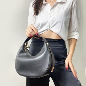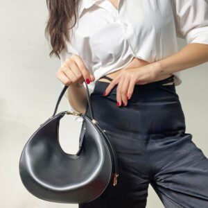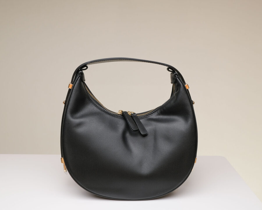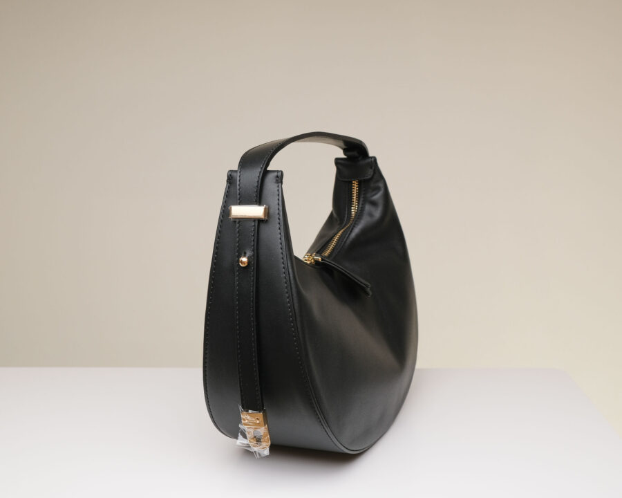 IRIS – genuine leather, half-moon shoulder/hand bag with adjustable strap and golden hardware