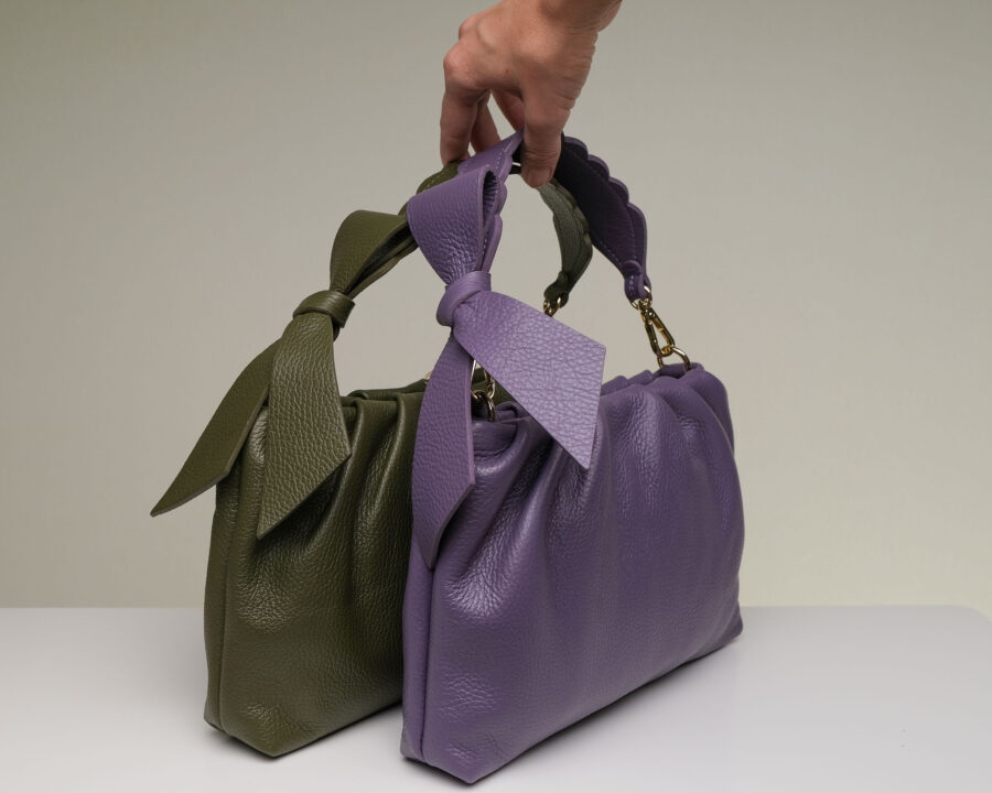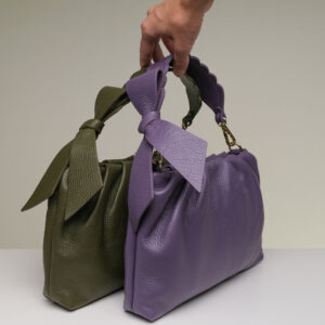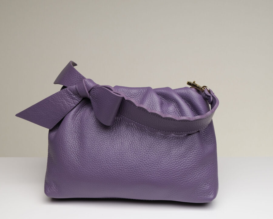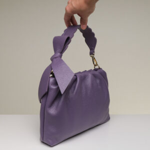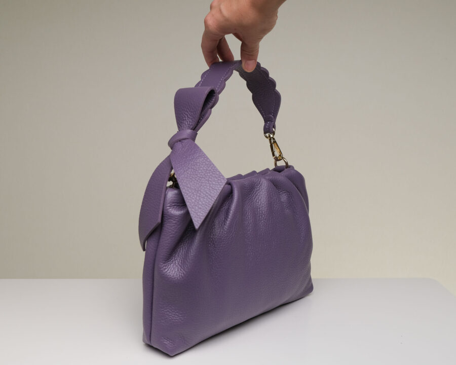 Orchid, genuine leather hand bag. Option to wear with longer strap, handheld or underarm hold.
